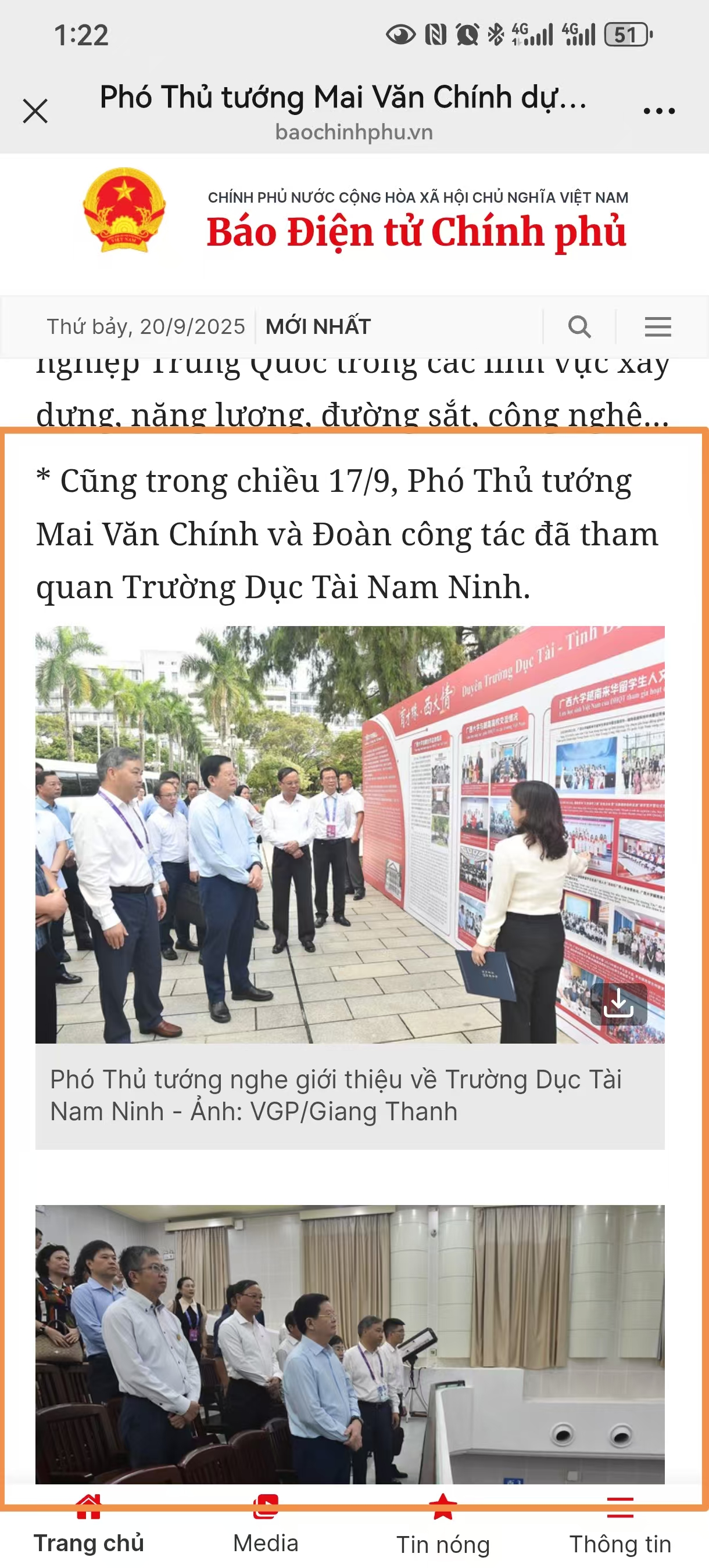 9月17日,越南副总理梅文政参观beat365官方网站原南宁育才学校旧址。越南政府电子报对此进行报道,报道部分内容如下: