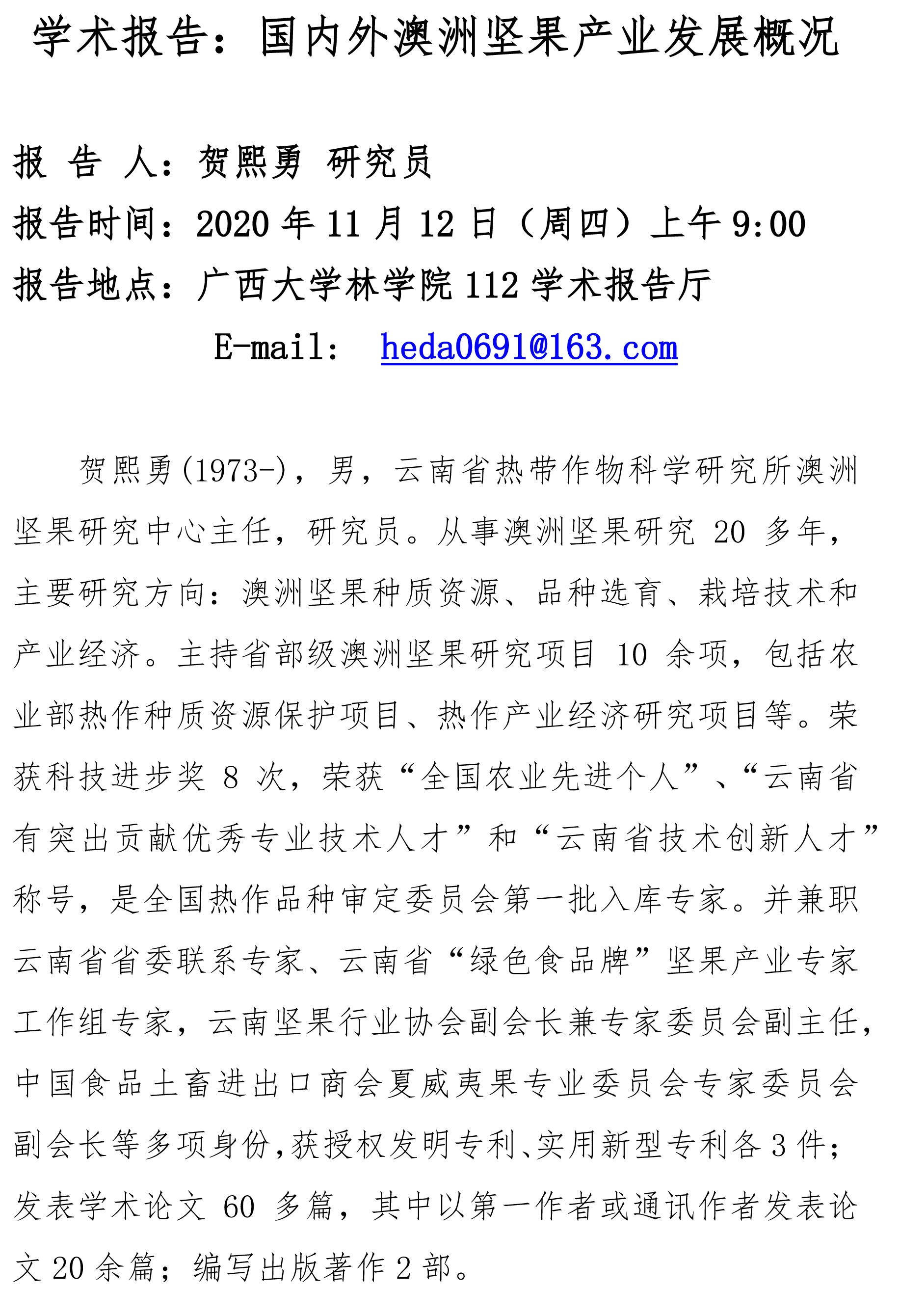 林学院学术报告:国内外澳洲坚果产业发展概况
