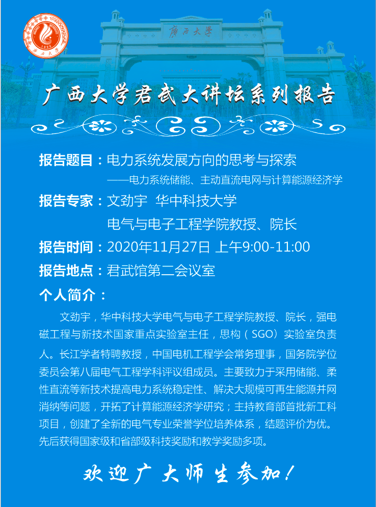 beat365官方网站君武大讲坛系列报告:电力系统发展方向的思考与探索—电力系统储能、主动直流电网与计算能源经济学
